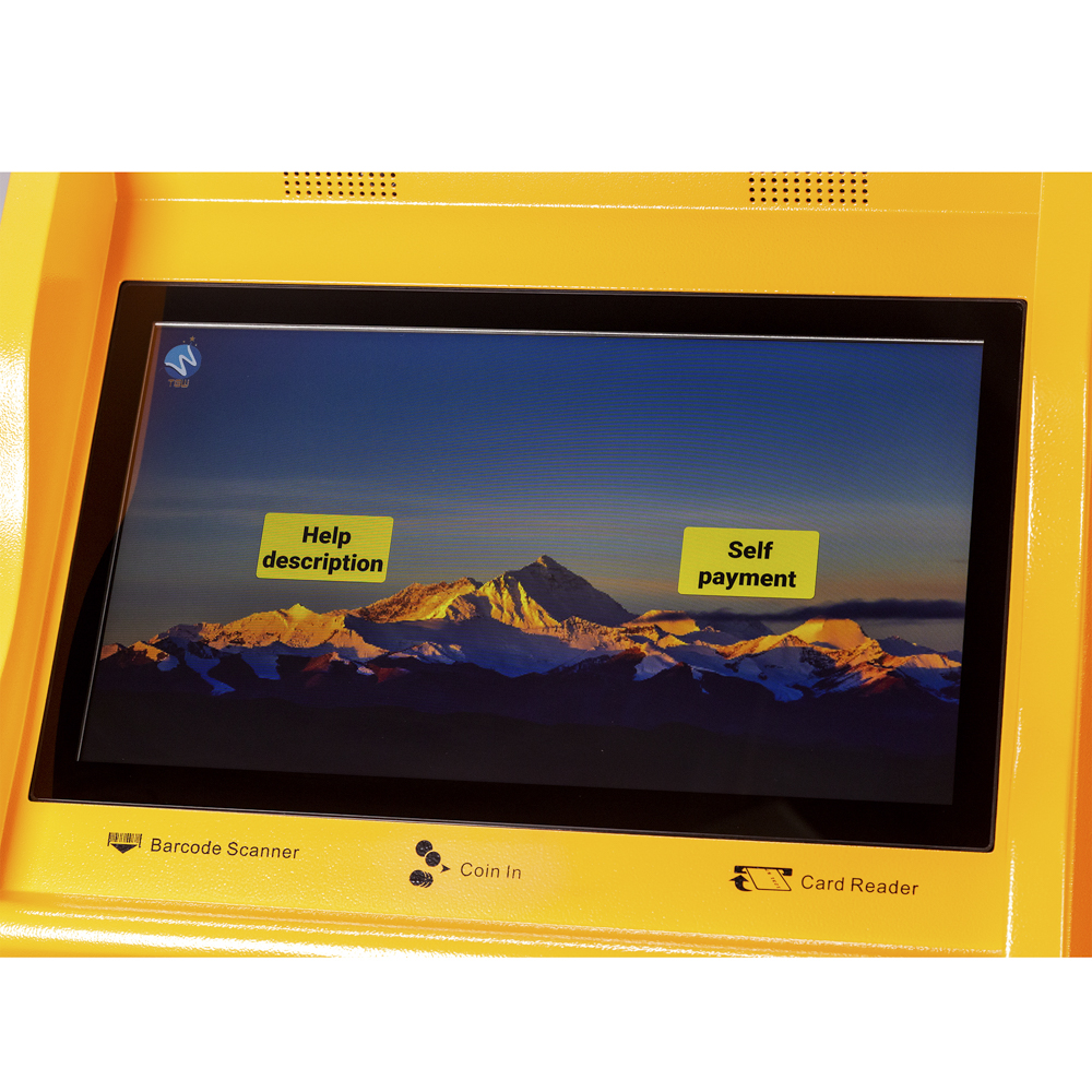 هذه آلة الدفع الذاتي تدعم الدفع النقدي والدفع بالبطاقة.