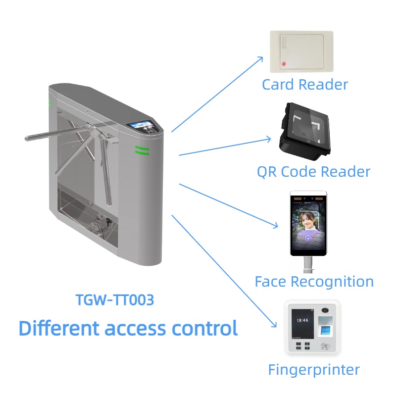 كل دوران (120 درجة) يسمح لشخص واحد بالمرور. ويمكن دمجها مع أنظمة مراقبة الوصول (مثل RFID وبصمات الأصابع والتعرف على الوجه) لإدارة الوصول التلقائي.