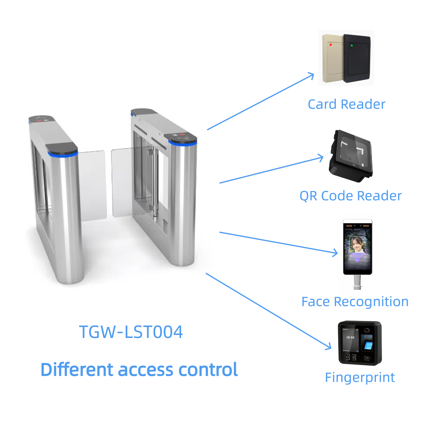 Cada abertura permite que una persona pase. Puede integrarse con sistemas de control de acceso (por ejemplo, RFID, huellas digitales, reconocimiento facial) para la gestión automática del acceso.