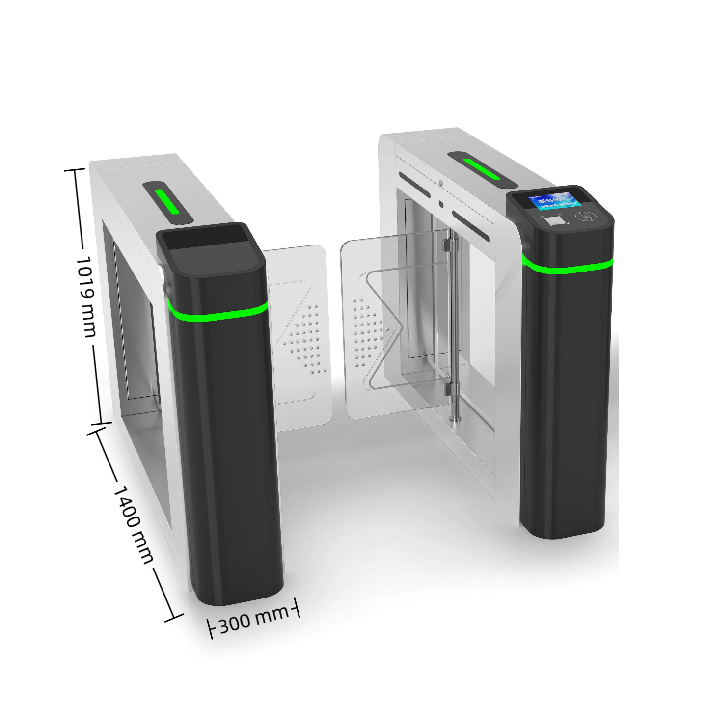 Nuestro tamaño estándar de puerta de torniquete oscilante es de 1400mm (longitud) x 300mm (ancho) x 1019mm (altura) y pesa unos 45 kg. El tamaño personalizado se puede hacer bajo petición.