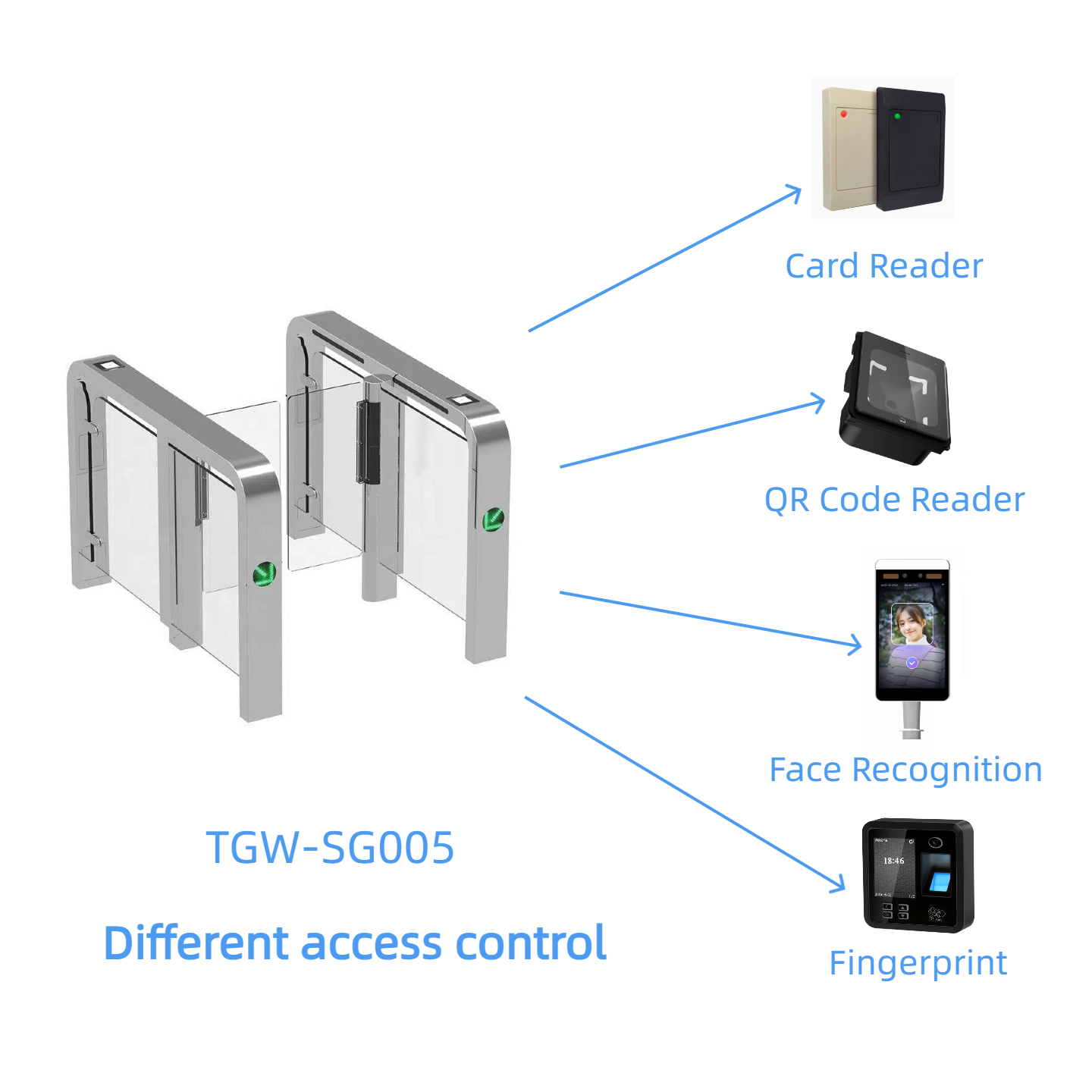 각 개방은 한 사람이 통과할 수 있습니다.자동 액세스 관리를 위해 액세스 제어 시스템 (예: RFID, 지문, 얼굴 인식) 과 통합될 수 있습니다.