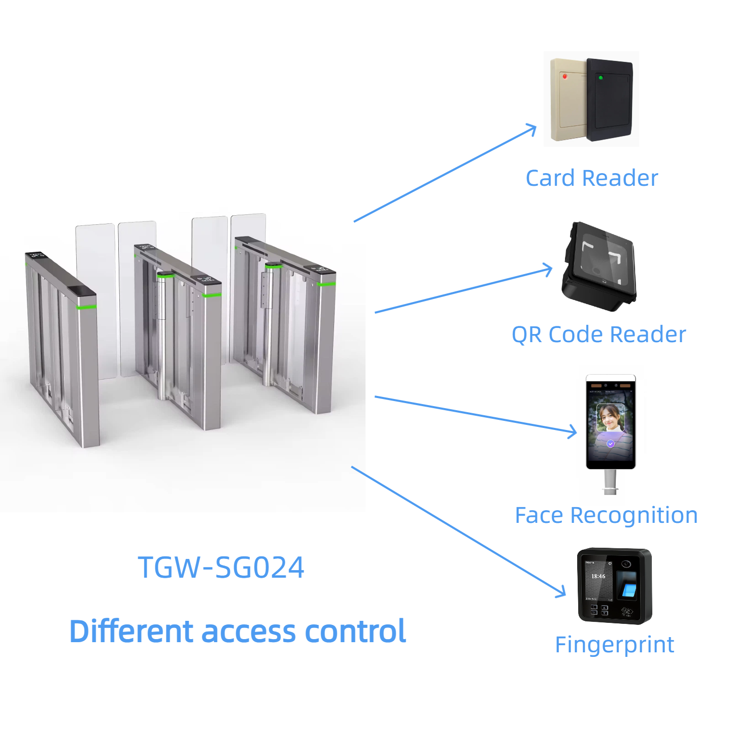각 개방은 한 사람이 통과할 수 있습니다.자동 액세스 관리를 위해 액세스 제어 시스템 (예: RFID, 지문, 얼굴 인식) 과 통합될 수 있습니다.