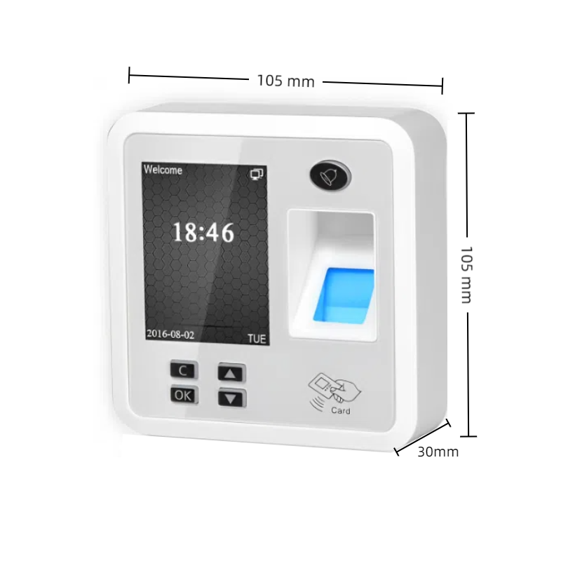 It supports three methods: card swiping (IC/ID card), fingerprint recognition, and password input. They can be used alone or in combination (such as fingerprint + password).