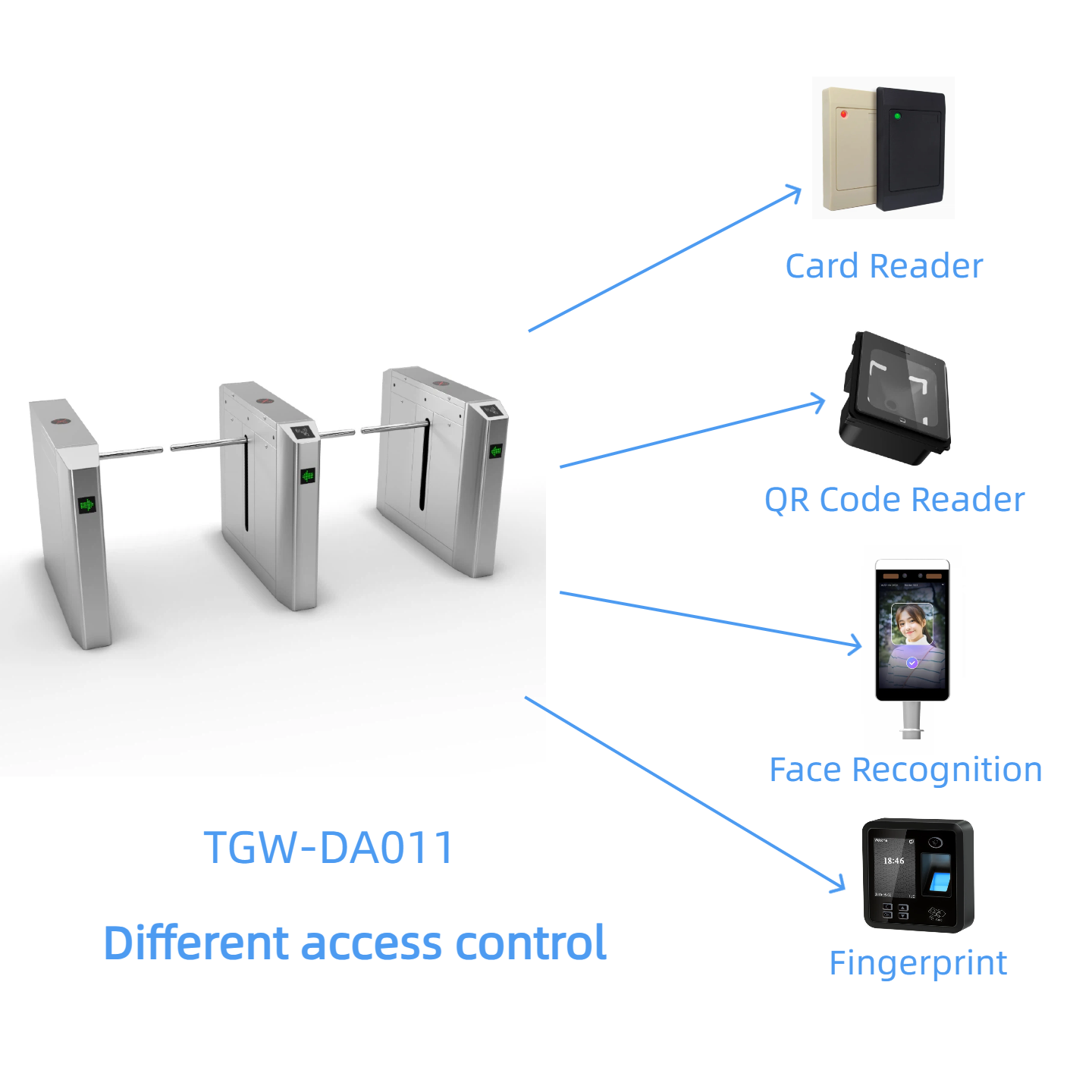 Each opening allows one person to pass through. It can be integrated with access control systems (e.g., RFID, fingerprint, face recognition) for automatic access management.