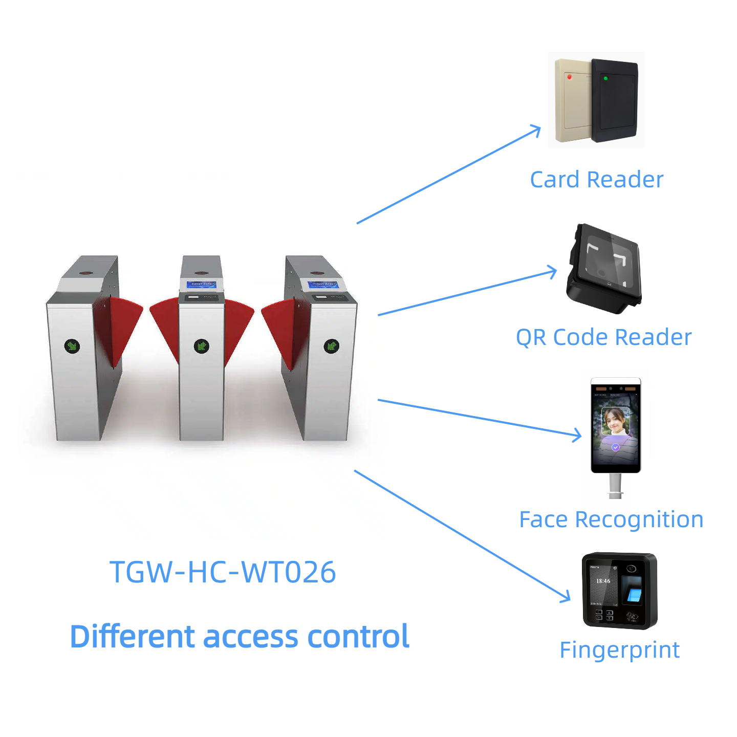 Each opening allows one person to pass through. It can be integrated with access control systems (e.g., RFID, fingerprint, face recognition) for automatic access management.