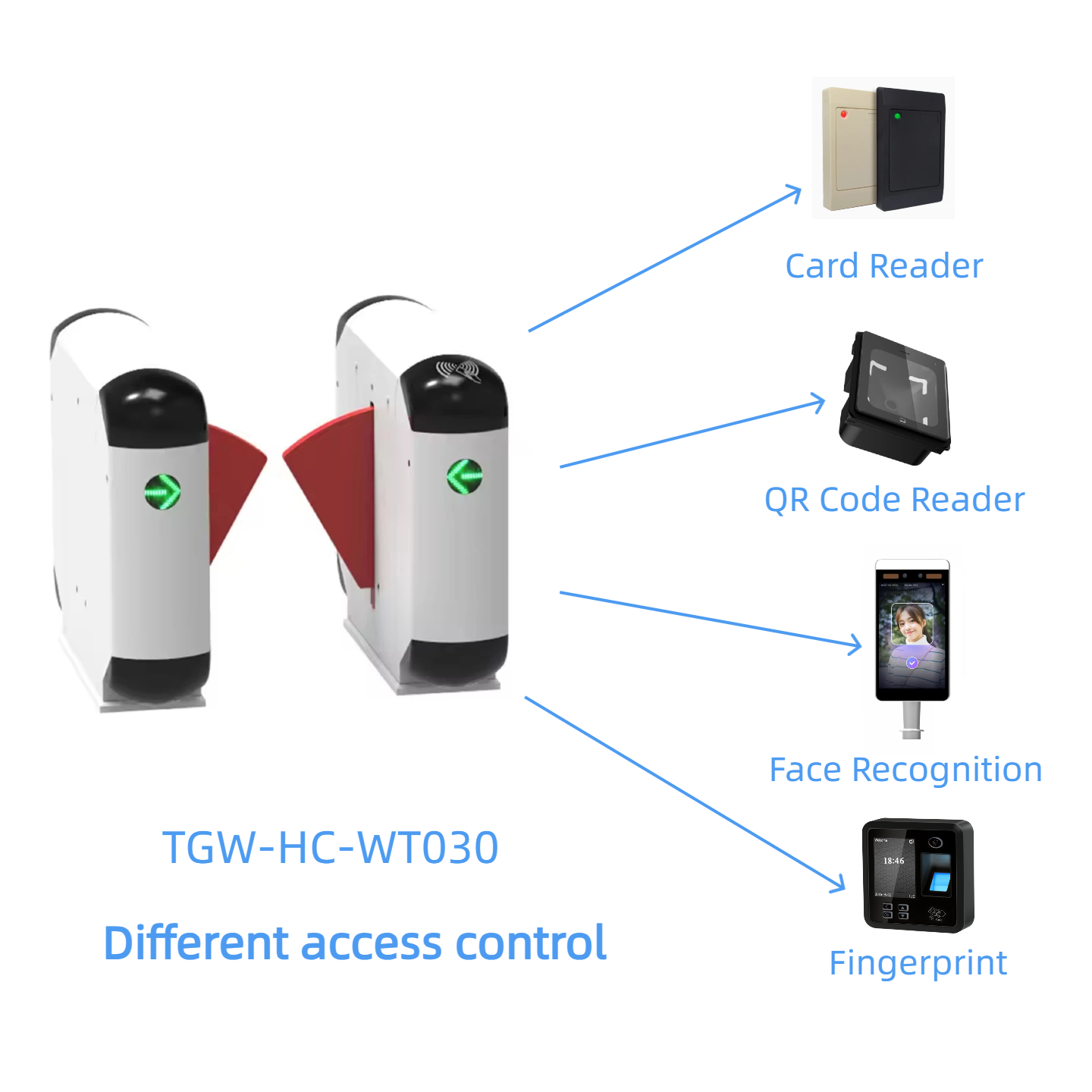 Each opening allows one person to pass through. It can be integrated with access control systems (e.g., RFID, fingerprint, face recognition) for automatic access management.