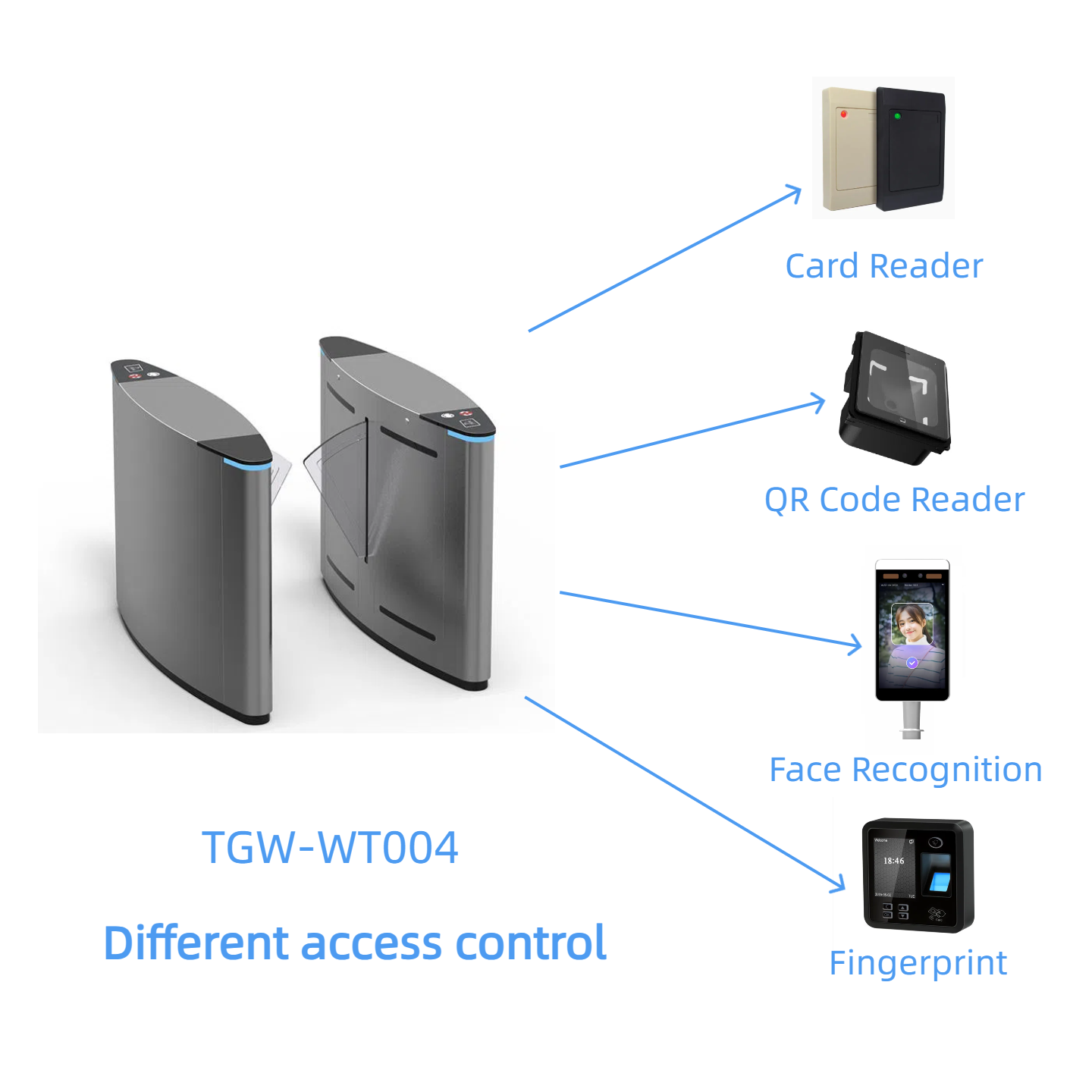 TGW-WT004 features an elegant streamlined design and intelligent control technology. It manages personnel entry and exit through fast-opening “door wings”, making it an ideal choice for high-end office buildings, smart campuses, transportation hubs and other places with strict requirements on safety and efficiency.