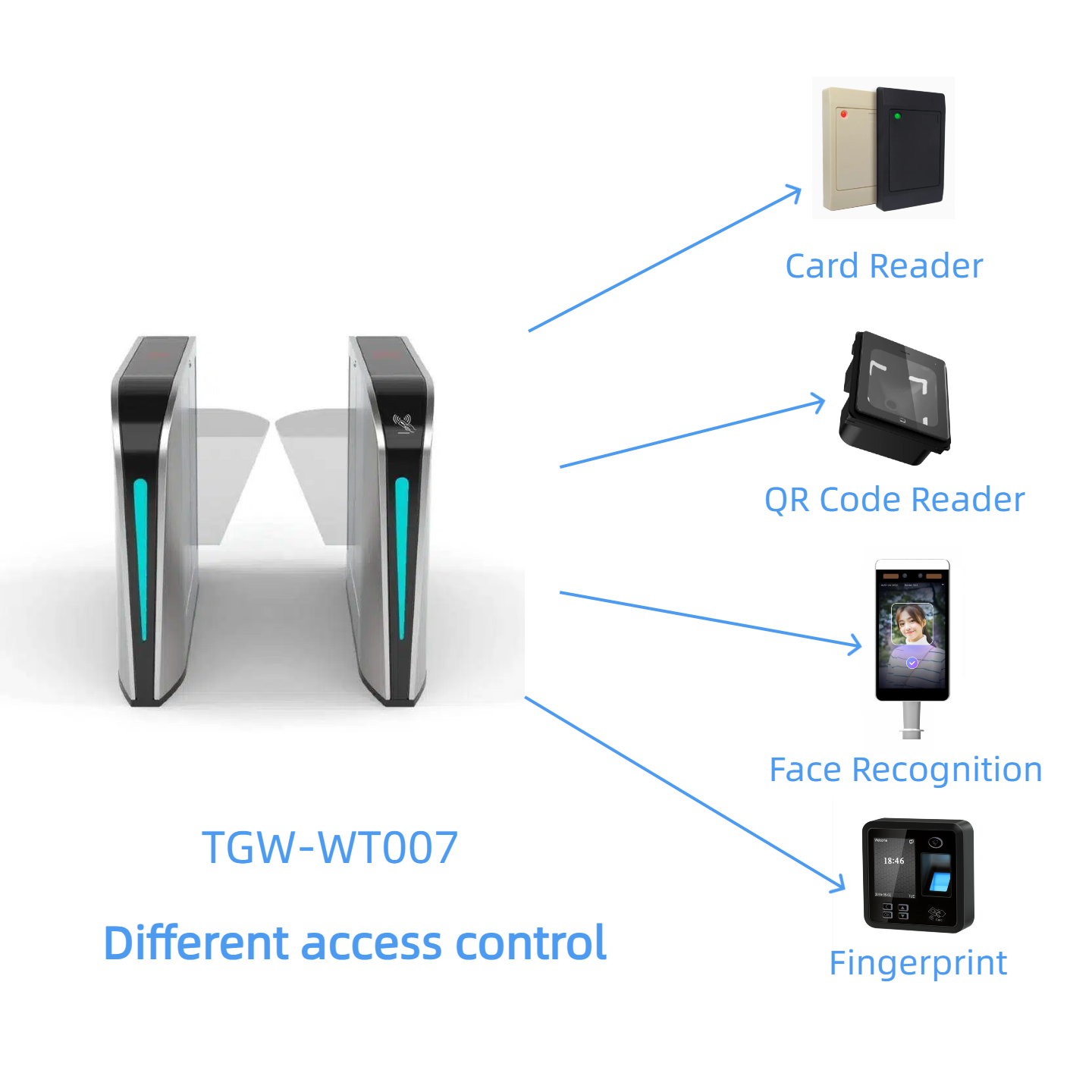 TGW-WT007 использует высокопрочные материалы и точную механическую структуру, сочетающую эффективный доступ с защитой безопасности. Его конструкция плавного открытия и закрытия крылья, в сочетании с интеллектуальной системой управления датчиками, делает его широко применимым в офисных зданиях, промышленных парках, метро и других местах. Он позволяет быстрый доступ, обеспечивая при этом точное предотвращение заднего закрытия, предоставляя пользователям безопасное, удобное и эффективное решение для управления доступом.