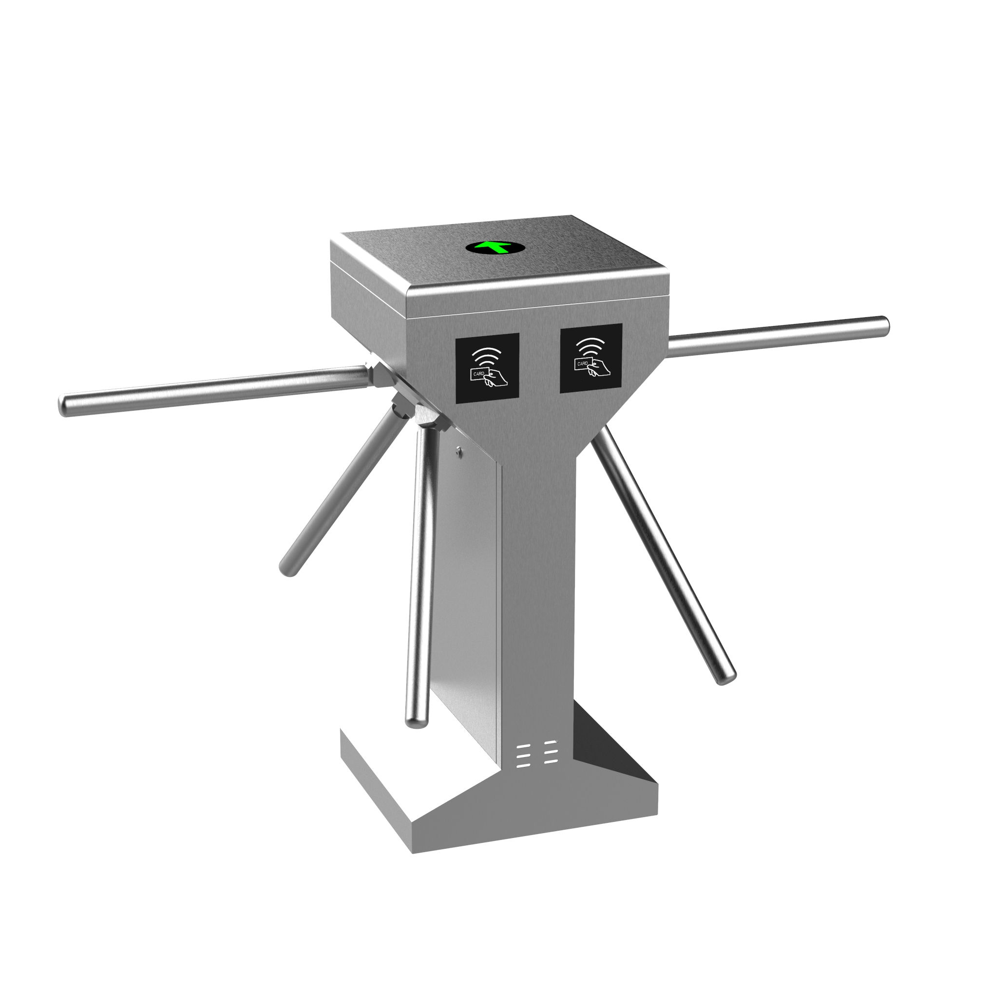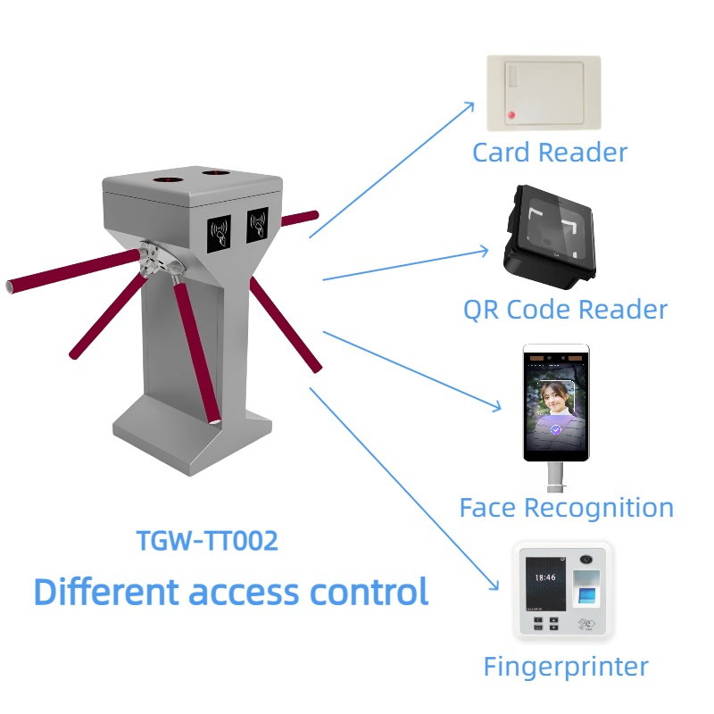 Каждое вращение (120°) позволяет пройти через него один человек. Он может быть интегрирован с системами контроля доступа (например, RFID, отпечатки пальцев, распознавание лица) для автоматического управления доступом.