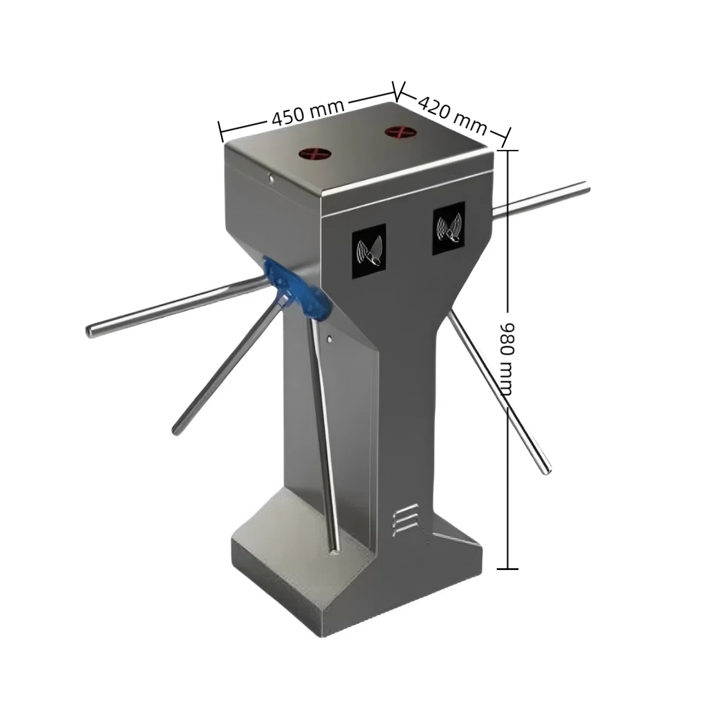 Наш стандартный размер триножного турникета составляет 450 мм (длина) х 420 мм (ширина) х 980 мм (высота) и весит около 35 кг. Подгонянный размер может быть сделан по запросу.