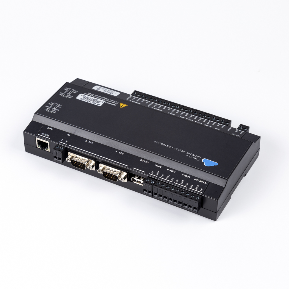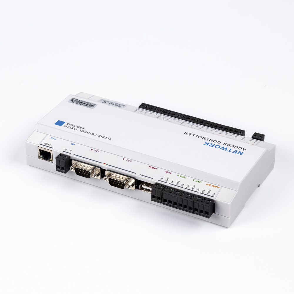 อินเตอร์เฟซมาตรฐานรวมถึงเครื่องอ่านบัตร 4 ชิ้น, อินพุตเตือนภัย 1 ชิ้น, เอาท์พุตเตือนภัย 1 ชิ้น, อินพุตเตือนภัย 1 ชิ้น, เอาท์พุตเตือนภัย 1 ชิ้น, ปุ่มออกไป 2 ชิ้น, อินพุตแม่เหล็กประต