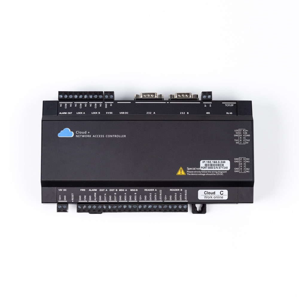 ข้อมูลเตือน: 1 เอาท์พุตเตือน: 1 ข้อมูลเตือนไฟ: 1 เอาท์พุตเตือนไฟ: 1 ปุ่มออกจาก: 2 ประตูข้อมูลแม่เหล็ก: 2 เอาท์พุตล็อคไฟฟ้า: 2 การสื่อสาร TCP / IP: 1 อินเตอร์เฟส 485: 1 |